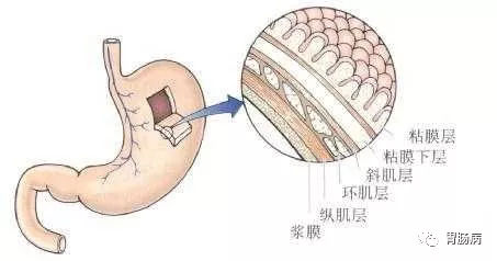 粘膜層,粘膜下層,肌層,漿膜層。